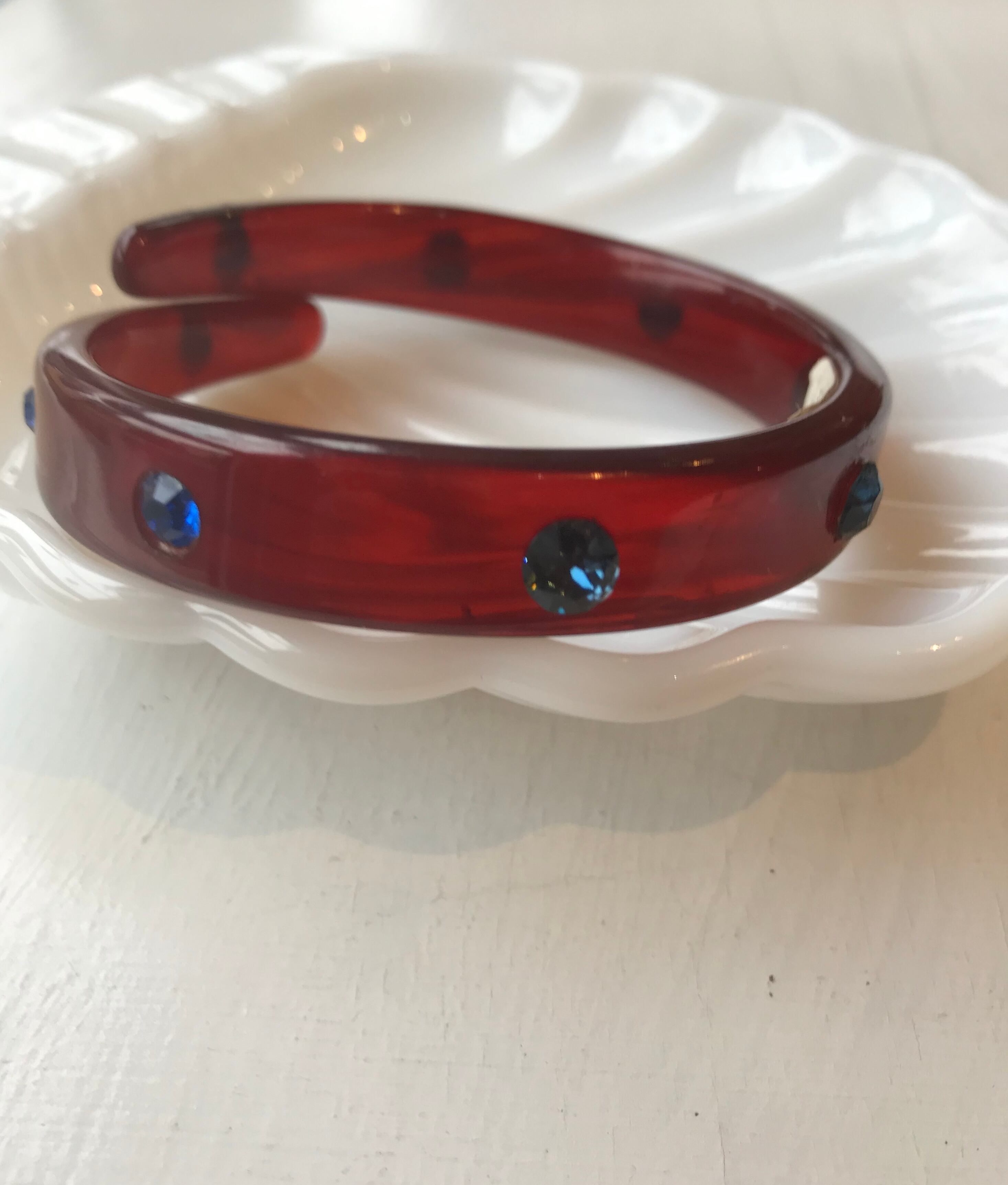 チェコからのヴィンテージバングル。ブルーのスワロフスキーが散りばめられてます。