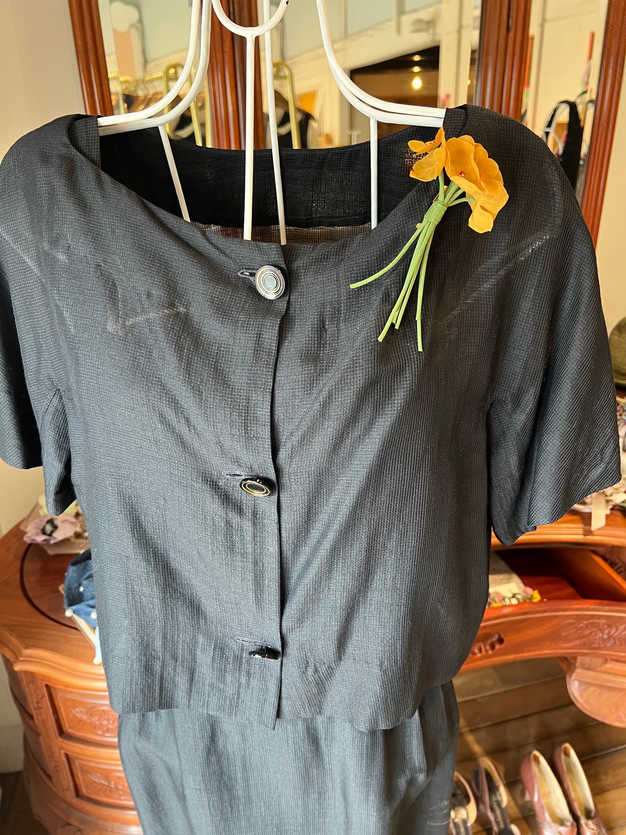 草木染めで染めたシルクとフランスとドイツのヴィンテージベップで作ったコサージュです。